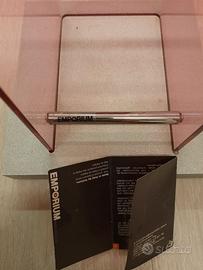 Porta DVD di Emporium in metacrilato rosa con basamento verniciato color alluminio. L'articolo è stato usato in ESPOSIZIONE all'interno del nostro showroom.