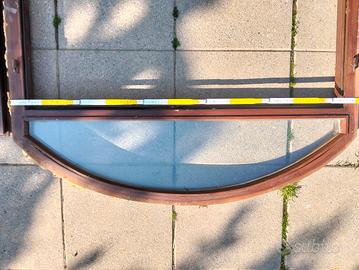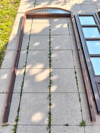 porta finestra in legno di rovere colore noce scuro avente dimensioni telaio esterne: larghezza telaio: 111cm altezza telaio: 211 cm altezza telaio mezzaluna 32 cm funzionante buona tenuta termica.
