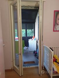 Vendesi. Telaio 1070 × 2420 e Porta Finestra a due ante L 1194 A2490 Finstral Fin-72. Classic line. Finitura bianco perla 07 con regolazione di apertura anta a ribalta estate/inverno, con cerniera standard a vista. Doppio vetro Plus-Valor 2 + Body safe 28 mm. Soglia ribassata con isolamento termico. Fermavetro classic
