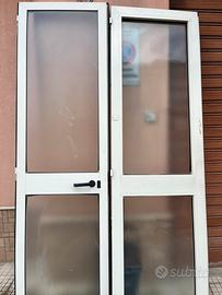 Porta finestra in alluminio L1400xH2400 compresa di telaio e serratura con maniglia in alluminio e vetri opachi , porta finestra con qualche usare del tempo ma perfettamente funzionante *SPERIZIONE A CARICO DEL CLIENTE *