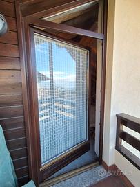 Porta finestra con vetro 4/20/4, con doppia guarnizione spessore 70mm, in legno Douglas. Misure 110xh205cm + sopra luce h62cm (che si può eliminare).
