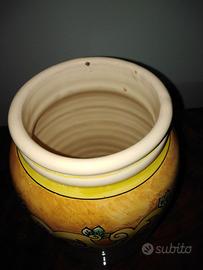 Porta Mestoli, può anche essere usato come Porta Fiori, in terracotta, decorato, e smaltato sia l'interno che l'esterno, artigianale di BELLIGGIANO TIBERIO, altezza 22cm, diametro 10cm , mai usato