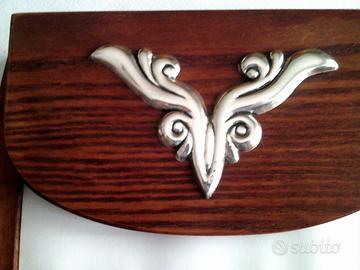 porta foglietti o biglietti da scrivania in legno con riporto in argento 925 mill nuovo mai usato fondo di negozio misure interne cm. 14,2 x 9,2 x 2,4 possibilità di consegna a mano per residenti di Napoli o provincia per altre destinazioni spedizione postale tracciata, costo a parte, previo bonifico bancario anticipato prezzo non trattabile