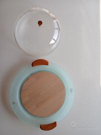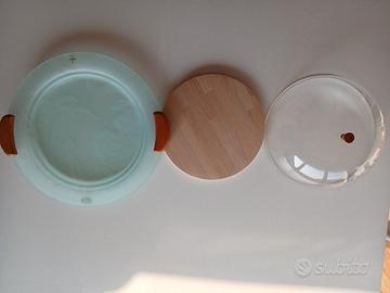 Porta dolce/porta formaggi con tagliere in legno incorporato con campana a chiusura in resina. Nuovo di Guzzini