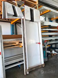 porta frigo con passaggio guidovia usata, si tratta di una porta frigo con passaggio guidovia, i pannelli sono un po' gonfi. dimensioni: 114X290cm, pannello sp.8cm, luce porta 90X220cm
