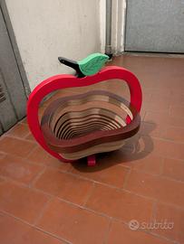porta frutta in legno dipinto a mano a forma di mela