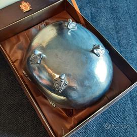Porta frutta a cestino in peltro lavorato a mano. Nuovo ancora nella confezione originale, ottimo per un regalo