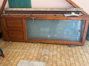 Porta garage, legno e vetro 3 ante compresa di controtelaio, 250x 80 legno in perfette condizioni e vetri intatti. Con maniglia e cerniere, pronta direttamente al monataggio.