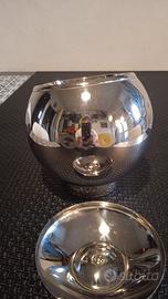 Portaghiaccio a sfera in acciao cromo progettato da Aldo Tura per Macabo. Oggetto molto bello per forma e stato delle perfette cromature perfette. Si segnalano, su sulla parte posteriore della sfera alcuni piccoli bolli, ma che come si può apprezzare dalle foto , non ne infiaciano la bellezza generale.