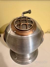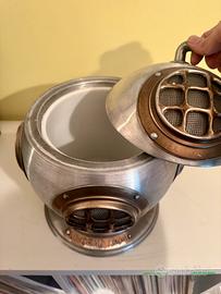 Porta ghiaccio vintage italiano anni ’70, realizzato a forma di casco da palombaro in stile marinaro.