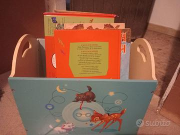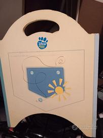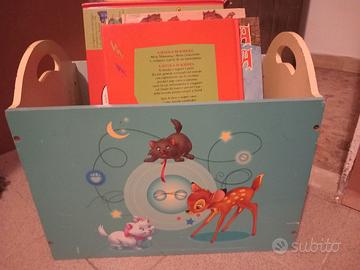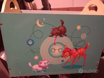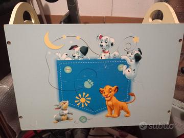Porta giochi in legno Disney. La vernice ha qualche segno come si vede nelle foto ma in buone condizioni. misure circa 50x30x30