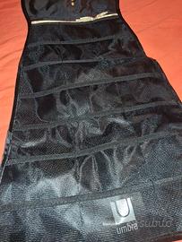 Porta gioielli da appendere a forma di vestito con inserti avanti e dietro. 21 tasche sul davanti e 19 agganci con il felcro sul retro.
