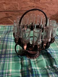 Porta grappa in ferro lavorato a mano con bocchieri di vetro, dispongo anche della grappa “riserva de graspa vecia” del 79 mai aperta.