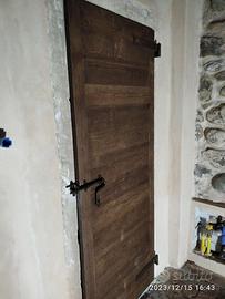 porta singola in legno di abete vecchio recuperato da trave, spazzolato carteggiato e morbido al tatto, con misure circa lungh. 69 h 182 spessore 4 cm. esclusa maestà, costruita come le porte esistenti del cliente (come una volta) con tavole frontali orizzontali parte anteriore con spalle verticali e bugnatura spizzatura ad incastro tra pannello e pannello orizontale, costruito a 3 strati in modo che non si muova nel tempoe rivestito con cartelle in legno vecchio, , completo di CARDINI VECCHIO FISSATI DIRETTAMENTE A MURO DA NOI con relative bandelle con aprione fissato al muro e catenaccio orizzontalein ferro vecchio arrugginito e bandelle fissate con chiodi vecchi rebattuti. Completo di finitura tinta noce scuro (come le porte vecchie esistenti) Compreso finitura Iva non comprendente, costruito su commissione, non disponibile a magazzino ma possiamo riprodurlo DIRETTAMENTE DAL PRODUTTORE ASTENERSI RIVENDITORI O COMMERCIANTI