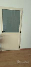Porta in alluminio colore bianco, dotata di serratura con vetro satinato nella parte superiore e pannello cieco nella parte inferiore. Robusta, elegante e perfetta per uffici, studi professionali, ambulatori o ambienti lavorativi. Completa di telaio. Caratteristiche: Materiale: alluminio Colore: bianco Parte superiore con vetro satinato Parte inferiore cieca Maniglia antipanico Serratura inclusa Completa di telaio Molto resistente e di ottima qualità Misure: Larghezza: 96 cm Altezza: 214 cm Prezzo: 250 € No spedizione – solo ritiro in sede