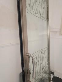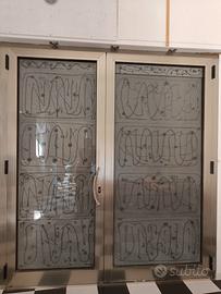 Grande porta a vetri in alluminio. Presenta in un'anta due crepe sul vetro che non si percepiscono al tatto. Ci sono resti di silicone che tengo a precisare che si levano. (Mostro in foto). Chi fosse interessato dovrà provvedere al ritiro. È già smontata.