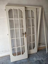 Vendo porta doppia bianca in ottimo stato, già smontata disponibile a piano strada. ritiro e trasporto a carico dell'acquirente. Dimensione singola porta 70cmx210cm, totale apertura 140cmx210cm Telaio 150cmx215cm