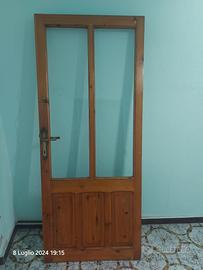 Porta in legno con anta in vetro, telaio e coprifili. Misure: 85x190.