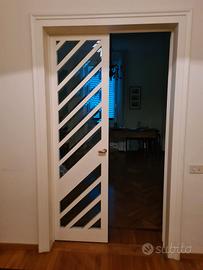 porta costituita da 2 ante in legno laccato bianco e vetro di fattura artigianale larga 1.22 m ( totale) altezza 2.25 m
