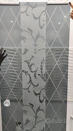 Bellissima Porta in vetro scorrevole esterno muro h 1.90 x l 0.70 in vetro temperato con disegno ecc come in foto, binario e fascione incluso trattabile