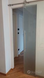 Vendo porta scorrevole in vetro temperato e ferramenta e binario in acciaio inox.