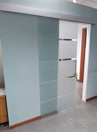 Bellissima Porta Scorrevole Interna in Vetro Smerigliato e Satinato con Binario B2 e Maniglia (per Bagno Cucina Studio) misure Vetro 205x 90x 0,8cm