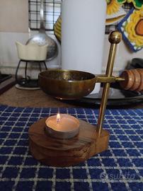 Vendo per inutilizzo questo porta incenso. Utilizzabile sia con resine (bejo, mirra ecc...) sia con essenze fatte da voi (un esempio possono essere l'alloro o la buccia d'arancia essiccati e frantumati). Il vantaggio è che il materiale posto sul bruciatore non è a diretto contatto con la fonte di calore, in quanto l'altezza è regolabile.