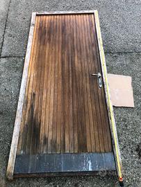 Vecchia porta d’ingresso in legno larghezza 93,5/91 altezza 222/220 con telaio. Luce telaio 101,5 cm x 230