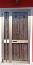 Porta ingresso in alluminio anni 80 Misure: H 225 X L 120 cm. Comprensivo di tende di uguale misura.