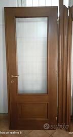 Vendo 1 p orta interna in legno colore ciliegio con vetri satinati, misura interna cm. 80x210. Vetro leggermente fessurato per un tratto di circa 20 cm.ma senza evidenza di rottura.