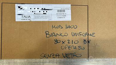 Porta interna apertura battente. Finitura laminato bianco venato. Misure L80x210H spinta SX filo, come in foto. Senza vetro. Ritiro a carico dell’acquirente.