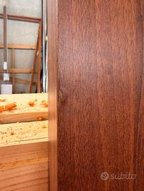 Effetto legno Trame profilo 202 V bianco latte 3+3 noce nazionale pannello diamantato battente tira destro 800 x 2100 mm TK L8, misura telaio 105 Noce nazionale guarnizione antracite magnetica chiave oro lucido cerniere a scomparsa cover oro lucido Fornita con telaio e coprifili, senza maniglia La porta è nuova ma presenta un difetto, con anta leggermente sbeccata