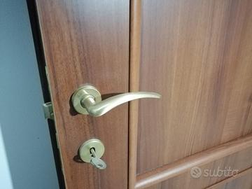 Vendo porta interna in legno, larghezza cm 72. Maniglia e blocco serratura color ottone. Nota: la porta è sprovvista di telaio.