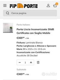 NUOVA! Porta da interno liscia INSONORIZZATA 30 dB certificata con soglia mobile, laminato bianco come da foto