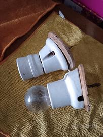Due portalampadine in ceramica Vintage perfettamente funzionanti non presentano segni di ruggine al loro interno non hanno nessun crepa nella ceramica . Possono essere utilizzati anche come plafoniere per ambienti rustici e tavernette. Il prezzo indicato vale per entrambi i portalampadine
