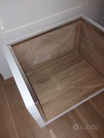 porta legna, costruito in cartongesso e piastrellato all'interno perché non si rovini, all'esterno è possibile verniciarlo del colore che si vuole