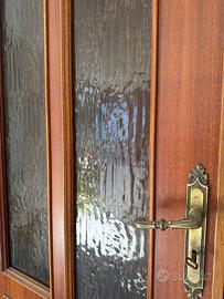4 porte in vero legno, con inserti in vetro lavorato fumè. Comprensive di telaio, copri fili e chiavi. Ritiro a domicilio.
