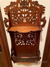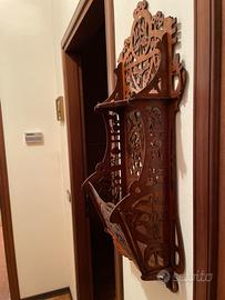Antico porta lettere / riviste in compensato, da apprendere a parete, lavorato a traforo. Misure: 60 x 30 x 15 cm