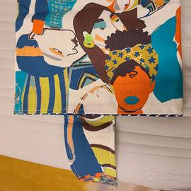 Porta Libro Dada Bags in cotone colorato nuovo mai usato. Misure 30 per 15. Chiusura a sacchetto con bottone in plastica e taschine davanti.