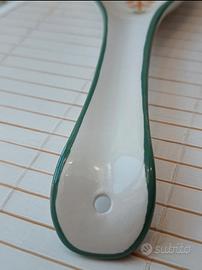 Elegante porta mestolo a tema natalizio, perfetto per aggiungere un tocco festivo alla tua cucina. II design presenta un albero di Natale stilizzato con dettagli dorati e una stella verde in cima.