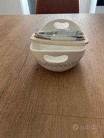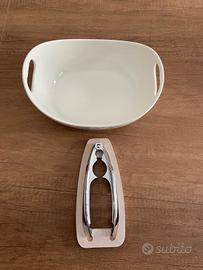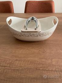 Vendo ciotola porta noci Brandani robusto ed elegante, realizzato in metallo con pratica base in legno che lo mantiene stabile durante l’utilizzo. Ideale per noci, nocciole e frutta secca in generale. Design semplice e funzionale, perfetto anche da tenere in cucina o portare in tavola. Disponibili 10 pezzi, già confezionati, ottima idea regalo, bomboniera. Lotto 200,00€