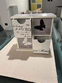 Porta oggetti Con 4 cassette Bianco e nero Con farfalle