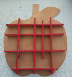Vendo due porta oggetti in legno, uno rettangolare e uno con la sagoma a forma di mela. Poco usati, in perfette condizioni, non presentano muffa o altri difetti. Misure: - rettangolare cm 50x40 - mela cm 44,5x39,5 circa.