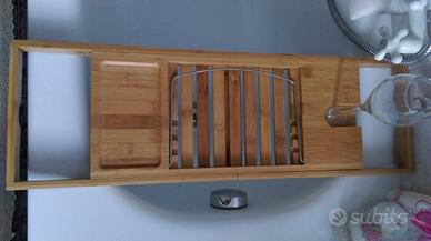 Causa doppio acquisto vendo comodissimo appoggia oggetti (libro, bicchiere, cellulare,...) per vasca da bagno. Misure adattabili a diverse misure.