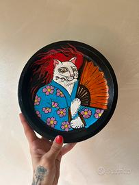 Piccolo quadro portaoggetti tondo in stile giapponese, realizzato a mano.