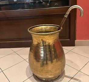 Porta ombrelli e bastoni e pianta in ottone vintage