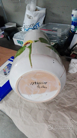 Vaso porta ombrelli portaombrelli in ceramica smaltata fatto e decorato a mano, perfetto, nessun segno o scalfitura dello smalto, colore bianco con motivo girasoli, ceramiche San Rocco.
