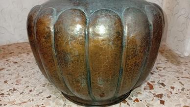 Vendo: porta ombrelli tutto in Rame imbrunito, con decorazioni a rilievo. Misura: altezza cm 59 Larghezza cm 30.
