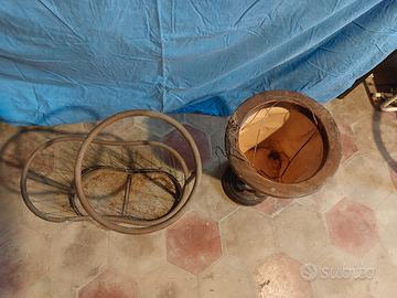Porta ombrello e bastoni in metallo ottonato anni 40. L'oggetto necessita piccoli interventi di restauro. vendo insieme ad una base per quello che all'origine era un lume e/o tavolinetto con contenitore. Anche questo da restaurare. Solo ritiro
