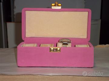 scatola porta orologi in pelle scamosciata adatta a conservare 4 orologi o bracciali, nuova mai usata.